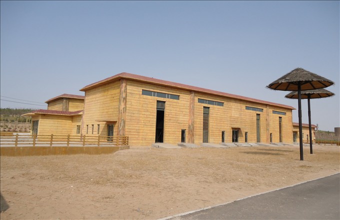 長頸鹿館:位于非洲區(qū)的靠南地,總建筑面積2444平方米,采用鋼筋混凝土框架結構,混凝土砌塊圍護墻體,仿非洲巖壁GRC外立面裝修。動物圈舍一側與室外場地相通,一側設置落地安全玻璃與游客大廳相連,便于游客觀賞。室外沿動物活動場地設置通道供游人觀賞。